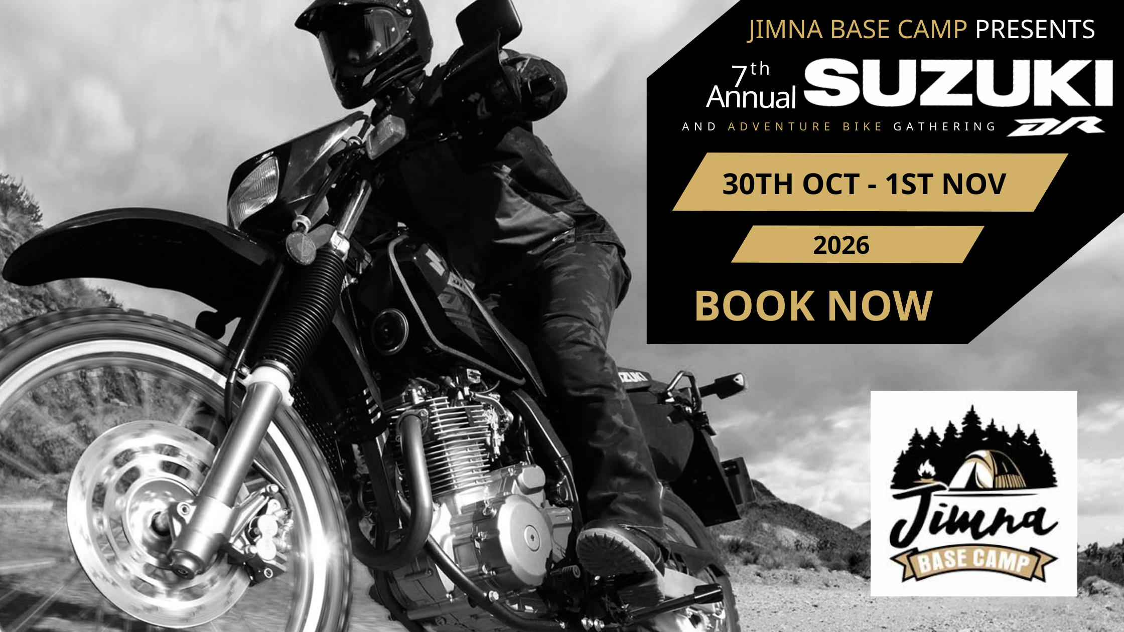 [vc_row css_animation="" row_type="row" use_row_as_full_screen_section="no" type="full_width" angled_section="no" text_align="left" background_image_as_pattern="without_pattern"][vc_column][vc_column_text css=""]The 7th Annual Suzuki DR and Adventure Bike Gathering in on again!! 30th October - 1st November 2026![/vc_column_text][/vc_column][vc_column][vc_separator type="normal"][vc_column_text css=""] The Annual Suzuki DR and Adventure Bike Gathering is Back! [/vc_column_text][/vc_column][/vc_row][vc_row css_animation="" row_type="row" use_row_as_full_screen_section="no" type="full_width" angled_section="no" text_align="left" background_image_as_pattern="without_pattern"][vc_column width="1/4"][vc_empty_space][vc_empty_space][vc_column_text...